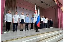 В корпусе "Исток" среди учеников 5-6 классов прошла церемония поднятия флага РФ и исполнения гимна.